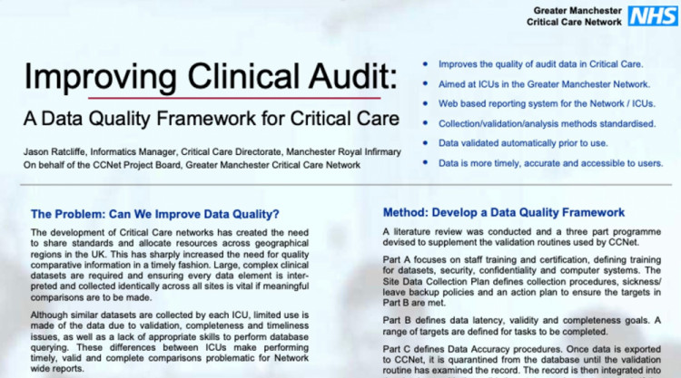 As Operations Manager, our founder, Jason Ratcliffe, architected and implemented a new, standardised data assurance framework to be applied across all of the company's national registry platforms, based on previous work for the Greater Manchester Critical Care Network. His solution included: